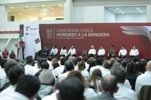 Ciudad Victoria, Tamaulipas.- El gobernador Américo Villarreal Anaya llamó a seguir trabajando como una sociedad colaborativa, empática y que actúe en conjunto para superar los retos que se presentan. Asimismo, exhortó a las y los tamaulipecos a adoptar una nueva cultura del cuidado del agua.Al presidir este lunes la ceremonia cívica de honores en el Polyforum de esta capital, el gobernador del estado reconoció a los directivos presentes de los Distritos de Riego 092 Las Ánimas y 02 de El Mante, así como del Distrito Pujal Coy de Ébano, San Luis Potosí, por su colaboración que permitió superar la crisis hídrica que afectó al sur del estado. “El gran reto que tenemos es seguir trabajando como una sociedad colaborativa, una sociedad en la que seamos empáticos, una sociedad que sepa que si trabajamos en conjunto podemos superar los problemas que nos aquejan en algún momento”, dijo.“Pero también tenemos que ser una sociedad resiliente, aprender a vivir en otras condiciones que quizás no habíamos tenido la oportunidad de enfrentar, y debemos tener la capacidad de cierto estoicismo para saber cómo salir adelante de los problemas, sabiendo que tenemos la capacidad para hacerlo”, agregó. En su mensaje, el mandatario tamaulipeco hizo un llamado para administrar correctamente los recursos hidráulicos con los que se cuenta ahora, tras las recientes lluvias, para que se mantengan por mucho tiempo. “Debemos seguir manteniendo una cultura del agua y el cuidado de este vital líquido porque ya nos dimos cuenta de lo que pasa y sufrimos cuando no tenemos acceso a él. Ahora, con este capital hídrico que tenemos, queremos administrarlo correctamente”, expresó.