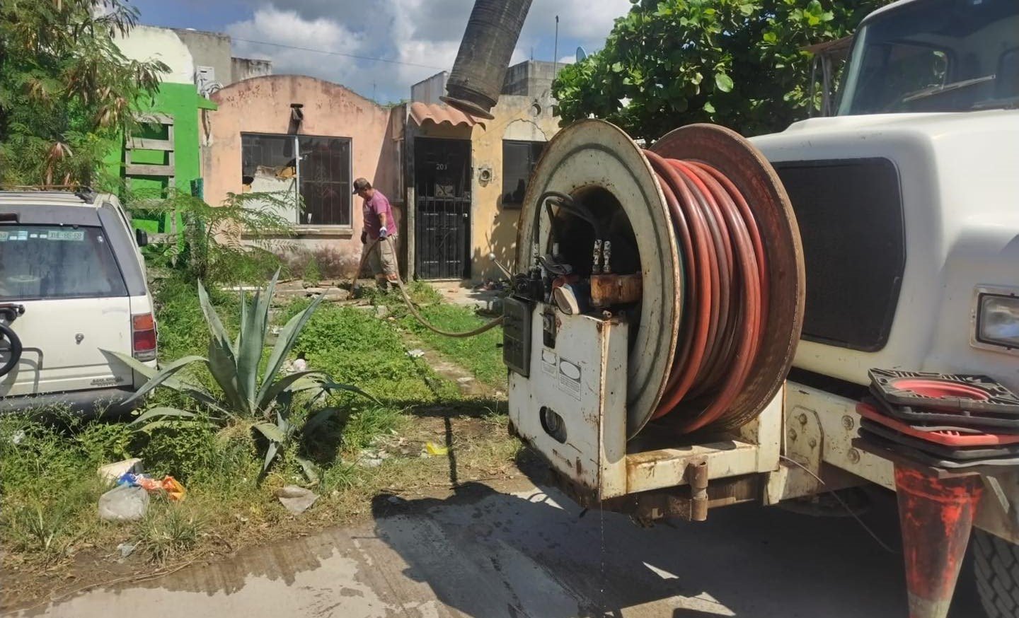 Con apoyo de camiones tipo vactor, se efectuaron labores de limpieza y mantenimiento en registros ubicados en calle Ocampo, entre Reforma y Revolución Humanista, y Benito Juárez, de la colonia Tampico-Altamira, resolviendo así problemas de escurrimientos de aguas residuales en esa zona.
