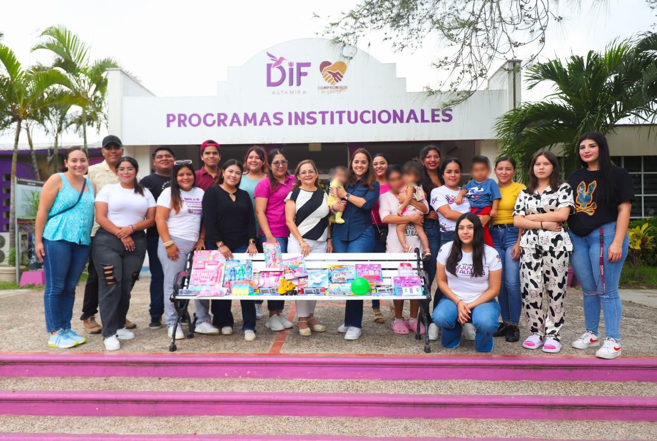 Esta entrega tuvo como marco la explanada de las oficinas generales del Sistema DIF Altamira, y a ella asistió la presidenta del organismo municipal, C.P. Rossy Luque de Martínez, quien de manera emotiva hizo entrega de 24 juguetes a pequeños que reciben la asistencia del DIF.Dicha entrega fue sumamente significativa, ya que se trató de alegrar el día a pequeños provenientes de países como China,