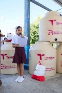 Méndez, Tamaulipas.- En el marco de una gira de trabajo por el municipio de Méndez, fue puesta en marcha la quinta entrega del programa “Alimentando tu Bienestar”, con lo cual se da cumplimiento al compromiso del gobernador Américo Villarreal Anaya, de mantener de manera permanente los programas sociales y de bienestar para mejorar las condiciones de vida a la población que habita en zonas vulnerables. La secretaria de Bienestar Social, Silvia Casas González, acompañada del presidente municipal Juan Mendoza Fuerte, acudieron al Nuevo Centro de Población “Pedro J. Méndez” donde hizo entrega de paquetes alimentarios, así como diversos apoyos sociales y supervisión de actividades del programa “Empleando Bienestar”. Ante los beneficiarios de esa comunidad y sus familias que acudieron a la escuela primaria “Benemérita de las Américas”, Casas González expresó en su mensaje el saludo afectuoso del gobernador Américo Villarreal Anaya, y el empeño de su palabra de que estos apoyos son permanentes y tendrán continuidad el próximo año. En este sitio resaltó que corresponden 790 paquetes alimentarios, que se suman al padrón total en el estado que es de 284 mil 747 apoyos, mismos que han llegado a los hogares de familias tamaulipecas a través de cinco entregas, como lo establecen las reglas de operación del programa “Alimentando tu Bienestar”. En este escenario y provenientes del programa “Atención Ciudadana para el Bienestar”, se hizo entrega de 60 tinacos para almacenamiento de agua, así como material deportivo. Antes, Casas González, así como las autoridades presentes y la comunidad escolar, escucharon el mensaje de la alumna de esta escuela Ivanna Esther Pérez Maldonado, quien agradeció al gobernador Villarreal Anaya, el envío de estos apoyos a las regiones donde más se necesitan. “Porque cuando el bienestar toca a una familia, en la vida de esa familia se enciende la esperanza y florece la fe en un mejor futuro”, expresó con gran elocuencia la alumna Pérez Maldonado. Durante la gira de trabajo por este Nuevo Centro de Población, Casas González acudió a los domicilios de Consuelo Zavala Romero y Sofía López Barrón, quien vive con una discapacidad motriz, a quienes hizo entrega de tinacos y paquetes alimentarios. También se realizó la supervisión de actividades del programa “Empleando Bienestar”, que se caracteriza por la colaboración comunitaria en el mejoramiento de espacios públicos. En este importante encuentro, acudieron además de la secretaria de Bienestar Social, Silvia Casas; el presidente municipal de Méndez Juan Mendoza Fuerte; el subsecretario de Bienestar Social, Samuel Badillo Amador; la profesora Anabel Olvera Gallegos, directora de la escuela primaria “Benemérita de las Américas”; la alumna Ivanna Esther Pérez Maldonado, además de autoridades locales y estatales que se sumaron a esta jornada de trabajo en favor del bienestar de las familias de la comunidad.