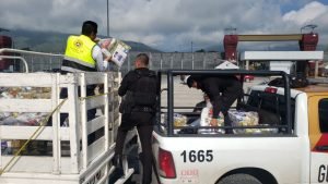 Estos paquetes, compuestos por alimentos no perecederos como arroz, frijol, aceite, harina de maíz, así como artículos de higiene personal, partieron este martes del Complejo Estatal de Seguridad Pública a bordo de unidades tipo pick-up.