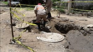 Mejorando la infraestructura hidrosanitaria, la Comisión Municipal de Agua Potable y Alcantarillado de Altamira llevó a cabo la reposición y levantamiento de pozos de visita, así como trabajos de mantenimiento y desazolve en esos registros de inspección en diferentes sectores de la ciudad.