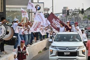 Tampico, Tamaulipas.- En una tarde de sábado digna para recordar, las candidatas de Morena para la Presidencia Municipal de Tampico y diputaciones locales por el distrito 21 y 22 Mónica Villarreal Anaya, Úrsula Salazar y Sabrina Morales, dieron una muestra se unidad inquebrantable al desbordar la principal arteria de la zona sur de Tamaulipas, la avenida Hidalgo.