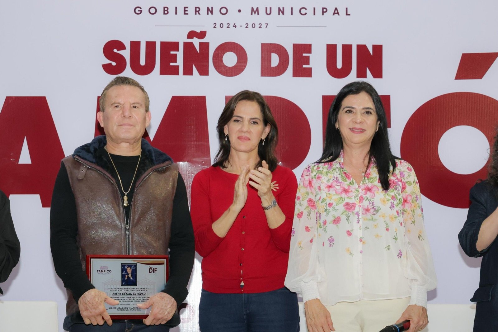 Cumpliendo el compromiso de ofrecer espacios que contribuyan a la integración social y la transmisión de valores, el Ayuntamiento de Tampico presentó la ponencia «El Sueño de un Campeón» con el ex boxeador mexicano Julio César Chávez, en el gimnasio multidisciplinario del polideportivo Tampico.