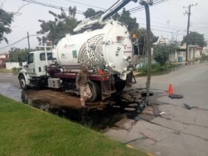 De igual manera, se procedió al sondeo y limpieza de la línea general de drenaje ubicada en la calle Galatea esquina con Avenida Paseo Nochebuena de la colonia Monte Alto sector 1, además del mantenimiento de la red de drenaje de la calle Real del Fraccionamiento Villas del Sol, de la calle Octava de la colonia Miramar, y de la Avenida 18 de Marzo de la colonia Serapio Venegas.