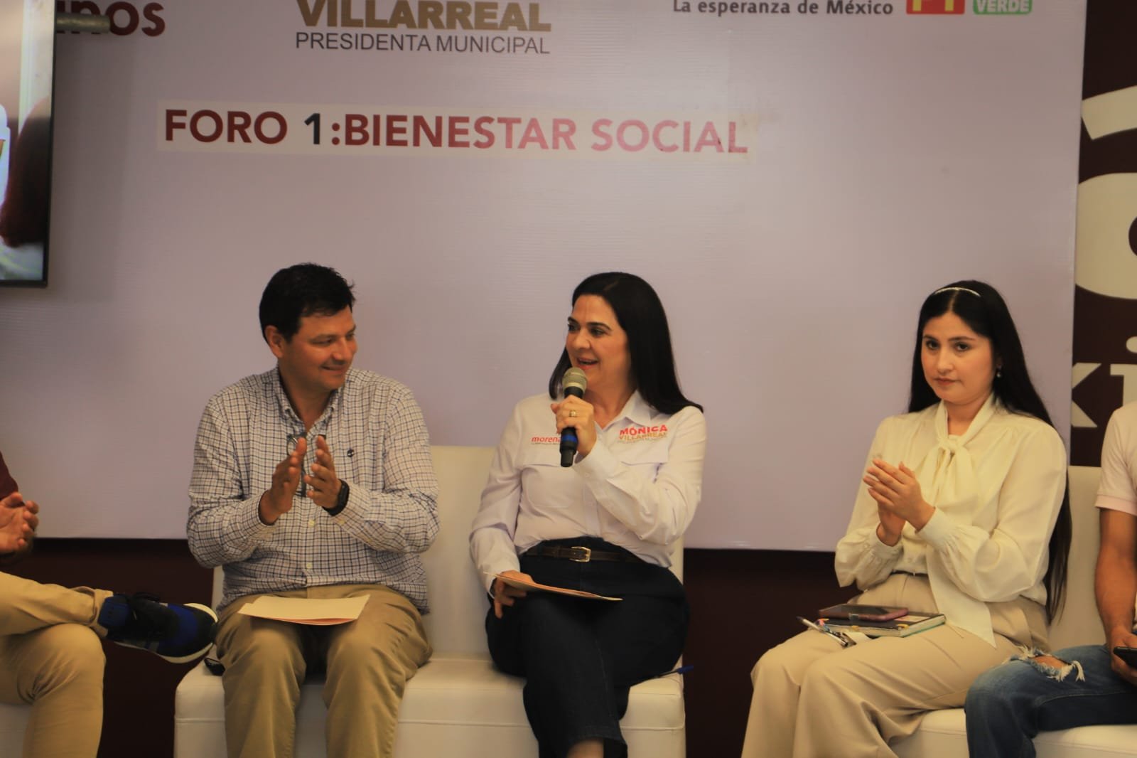Al respecto,Villarreal Anaya, hizo hincapié en que dentro de sus ejes de campaña el tema de Bienestar Social es una prioridad.» Precisamente en eso consisten las propuestas que traemos que es el humanismo mexicano, están centradas en el bienestar de las personas, hoy ya los gobiernos de Morena preocupados por cada uno de los mexicanos, tamaulipecos y tampiqueños, trabajan de la mano para lograr una estabilidad en todos los aspectos», dijo Villarreal Anaya.La candidata de la 4T expuso que si este próximo 2 de junio los votos le favorecen, se enfocará en crear el primer Sistema Municipal de Cuidados que permitirá a las mujeres trabajadoras y sus familias contar con espacios para que las niñas y niños puedan jugar, aprender y ejercitarse, además de ofrecer distintos servicios como son talleres de aprendizaje, clases deportivas y atención médica o psicológica.En el tema de educación, dijo, habrá de coadyuvar con el gobierno estatal y federal en la mejora y mantenimiento de las escuelas, así como mantener un diálogo cercano con maestros.»Por esta razón, dimos inicio con el tema del bienestar social, que tiene como propósito mejorar las condiciones de vida de todos los tampiqueños, sin dejar a nadie atrás», enfatizó la candidata de Morena.En este Primer Foro «Bienestar Social» por un Tampico para todos, la candidata a la alcaldía porteña, añadió que dentro de sus compromisos de gobierno dará prioridad a los temas de salud, rehabilitación de espacios públicos y a la promoción del deporte.La candidata de la Coalición Morena-PT- Verde Ecologista, dijo que estará sumando muchas aportaciones, ideas y compromisos de todos los sectores de la sociedad, ya que uno de sus principales compromisos de gobierno será la coordinación tanto con autoridades de los municipios conurbados, del gobierno estatal y federal, como con organizaciones de la sociedad civil.En el evento estuvieron también presentes las candidatas a diputada locales por los distritos 21 y 22, Úrsula Patricia Salazar Mojica y Sabrina Morales Chávez.