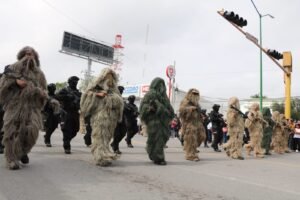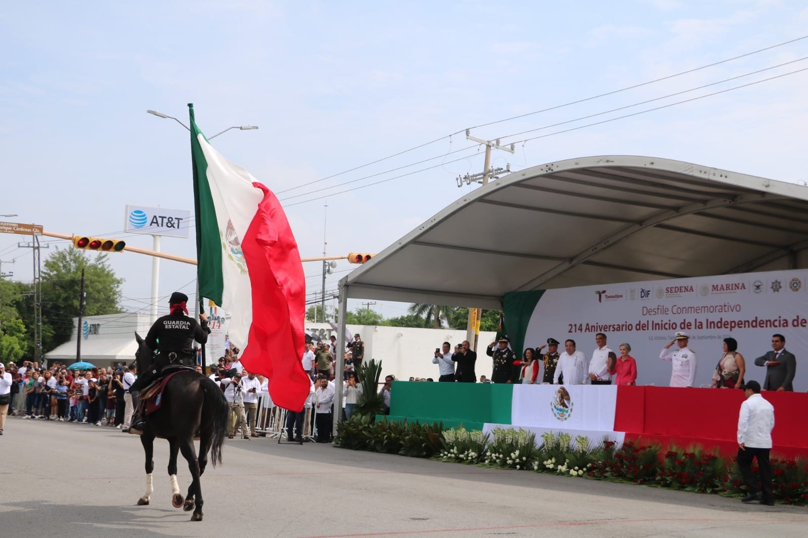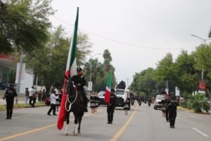 Septiembre 16 de 2024.- Ciudad Victoria, Tamaulipas. – En conmemoración al 214 aniversario del inicio de la lucha por la Independencia de México, la Secretaría de Seguridad Pública de Tamaulipas (SSPT) participó en el tradicional desfile celebrado en la capital de la entidad. Este evento cívico-militar congregó a las diferentes unidades y agrupamientos de la Guardia Estatal, así como a personal de los Cuerpos de Vigilancia, Custodia y Seguridad.Tras realizar la Guardia de Honor en el Monumento a los Héroes de la Independencia, encabezada por el gobernador, Américo Villarreal Anaya; el desfile conmemorativo dio inicio en la Calle Juan B. Tijerina y Coahuila.En lo que respecta a la SSPT, el contingente fue encabezado por la Banda de Guerra y el Grupo Motorizado de la Guardia Estatal, seguido de las banderas monumental y nacional, así como el escudo de Tamaulipas a cargo de la escolta femenil.También participaron la Fuerza Aeromóvil, Fuerzas Especiales de la Guardia Estatal (FEGE), Guardia Estatal de Género, Policía Auxiliar, Dirección de Tránsito Estatal, Fuerza Operativa “Plan Tamaulipas”, Policía Procesal, Fuerza de Paramédicos Tácticos Policiales, Agrupamiento Canino, Cadetes de la Universidad de Seguridad y Justicia de Tamaulipas (USJT) y Agrupamiento Montado. Al ser el incremento al parque vehicular, muestra del compromiso y colaboración del gobernador con la SSPT, desfilaron diversas unidades motorizadas, desde radio patrullas, vehículos tipo Urvan de la Guardia de Género, Polaris, Mamba, patrullas correspondientes a la Dirección de Tránsito Estatal y helicópteros.