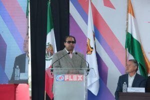 En su mensaje ante directivos de Flex Américas y el embajador de la India en México, Pankaj Sharma, el gobernador del estado dio la bienvenida a este modelo de empresas que generan desarrollo y a la vez velan por el crecimiento y el bienestar social del entorno donde se instalan.