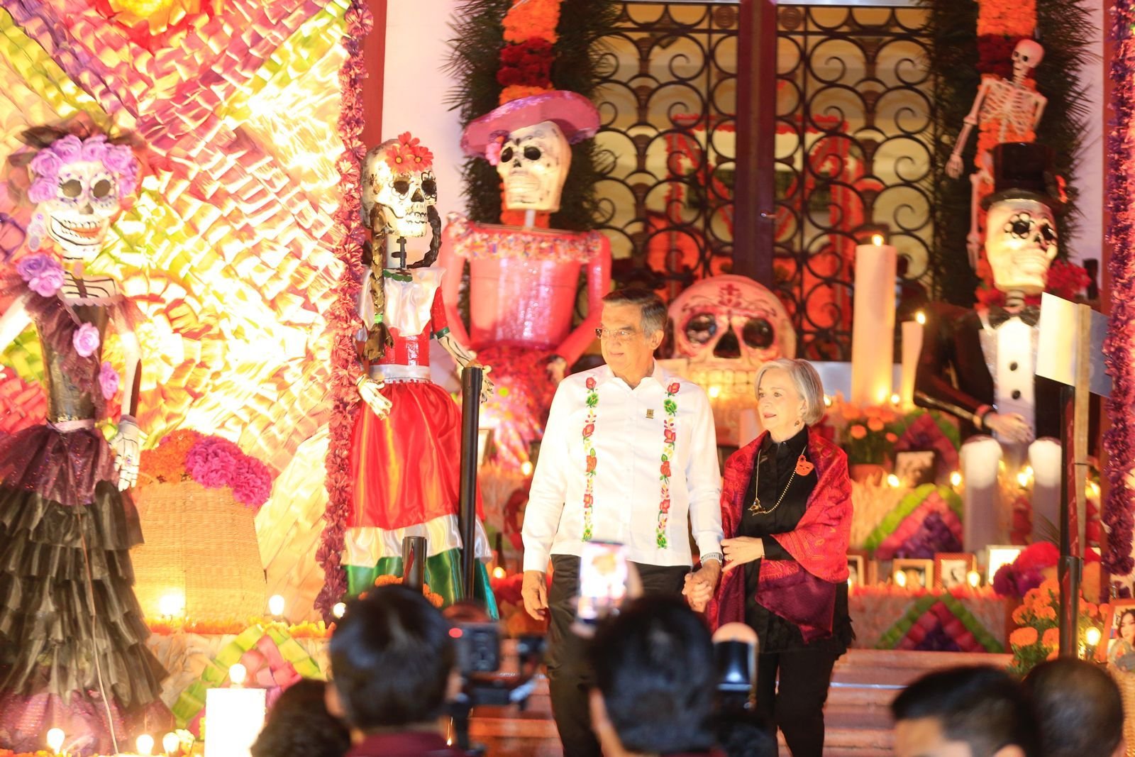 Ciudad Victoria, Tamaulipas.- En un ambiente impregnado por el aroma de la flor de cempasúchil, el pan de muerto y las luces de las velas, el gobernador Américo Villarreal Anaya y la presidenta del