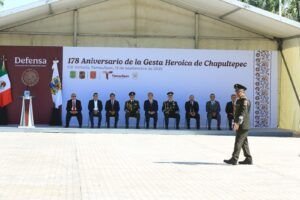 “La permanente comunicación y colaboración con las Fuerzas Armadas y la Guardia Nacional reditúa y se traduce en avances sustantivos de paz y seguridad, por lo que es un honor refrendar, estimado general, nuestro agradecimiento por su apoyo y presencia, y por el honor de celebrar unidos este acto de memoria y homenaje a los jóvenes cadetes del Heroico Colegio Militar, que, junto a muchos otros mexicanos, fueron grandes protagonistas de la Gesta del Castillo de Chapultepec”, expresó.