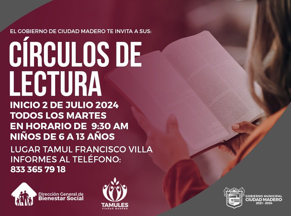 Para seguir contribuyendo en la educación de niños y jóvenes maderenses, el Gobierno Municipal a través de la Dirección de Bienestar Social, invita a inscribirse a los Círculos de Lectura que se llevarán a cabo en el Centro Tamul Francisco Villa a partir del 2 de julio.Al respecto, Alejandra Calderón Ávalos Flores, encargada de despacho de la dependencia, informó que esta actividad se realizará todos los martes a partir de las 9:30 de la mañana y tiene como propósito despertar el interés en este sector de la población por abrir un libro y dejarse atrapar por la magia que encierra.Explicó que la dinámica consiste en seleccionar un libro de preferencia textos literarios y durante la lectura se propicia el diálogo en torno a los temas propuestos, de tal manera que se enriquezca la experiencia lectora.Cabe señalar, que otro de los servicios que se ofrece a la ciudadanía son las asesorías de psicología clínica y educativa, así como clases del Instituto Tamaulipeco de Educación para Adultos (ITEA).Finalmente, reiteró que los interesados en estas actividades gratuitas, pueden acudir a solicitar información al Centro Cultural Bicentenario, o bien, comunicarse al teléfono 833 365-79-18.