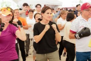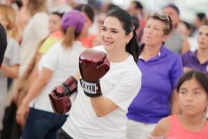 Con el objetivo de promover entre la niñez, juventud y población adulta la práctica del boxeo como opción de deporte y convivencia familiar, la alcaldesa de Tampico, Mónica Villarreal Anaya, encabezó este domingo una clase masiva gratuita de esta disciplina.
