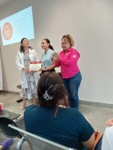 Al término, la titular de la Dirección General de la Mujer, Lilia Edith Álvarez Aldape, entregó un reconocimiento a la ponente. También estuvo presente la Dra. Yasmina Aracely Mendoza Dahe, directora de la Unidad IMSS BIENESTAR, además de integrantes del Cabildo.