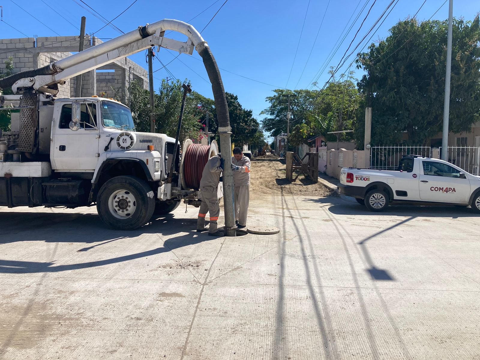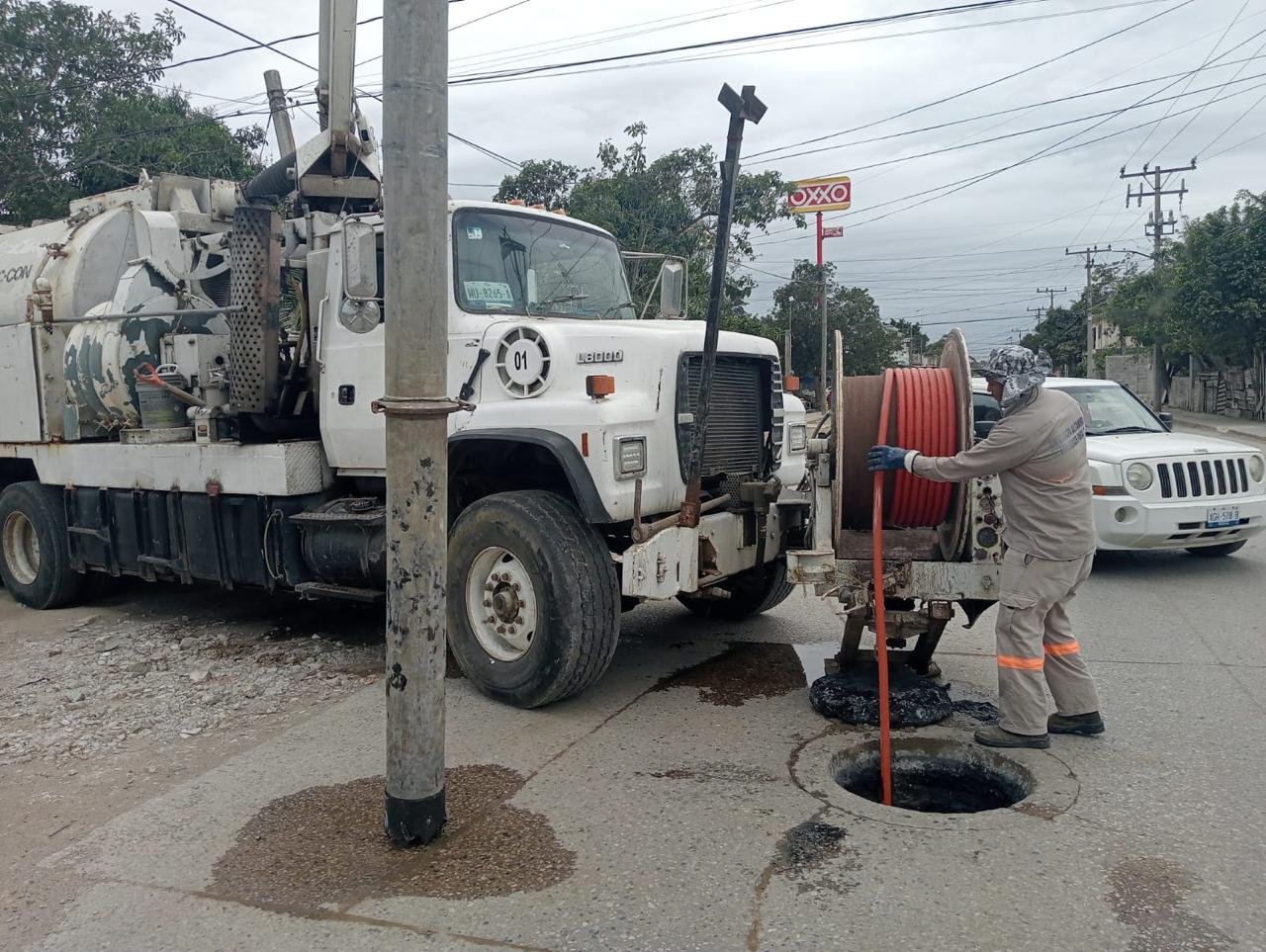 Empleando camiones tipo vactor, personal del organismo realizó en la colonia José María Morelos acciones de limpieza y mantenimiento en los colectores que se localizan en la calle 2 de Mayo, entre las avenidas Segunda y Cuarta, así como en los conductos de drenaje de las colonias Bahía y Monte de los Olivos.