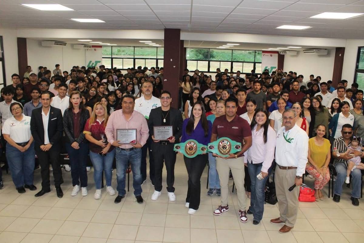 La Universidad Tecnológica de Altamira vivió una jornada de motivación y orgullo con la visita del boxeador profesional Raúl “Cugar” Curiel, quien compartió con estudiantes su trayectoria llena de esfuerzo, disciplina y logros deportivos que lo han posicionado como uno de los máximos representantes del boxeo tamaulipeco. Durante su charla, “Cugar” relató los retos y sacrificios que ha enfrentado dentro y fuera del ring, motivando a los jóvenes a luchar por sus sueños con constancia y determinación.