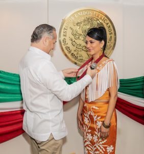 “Hoy nos da mucho gusto entregar la medalla Candelario Garza, a una maderense que viaja por el mundo mostrando su talento y el enorme tesoro musical de Tamaulipas y México”.