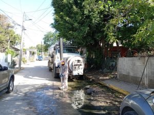 Con la finalidad de optimizar el funcionamiento de la red hidrosanitaria, la Comisión Municipal de Agua Potable y Alcantarillado de Altamira, que dirige el Ing. Omar Hernández Leines, llevó a cabo acciones de sondeo en líneas generales de drenaje y limpieza de registros en diferentes colonias y sectores de esta ciudad. Para remediar problemas de escurrimientos de aguas residuales, con el apoyo de camiones tipo vactor, personal de este organismo realizó el sondeo de líneas en calle Jazmín de la colonia Monte Alto, calle Álamo del sector La Florida, y en calle Barra de Calabaza, entre Francisco I. Madero y Barra de Jesús María, de la colonia INFONAVIT Fidel Velázquez. Labores similares se desarrollaron en tiempo y forma en calle Cedro y en la avenida Las Flores de la colonia Monte Alto (horario nocturno), calle Chijoles de la colonia Los Pinos, bulevar Benito Juárez de la colonia INFONAVIT Fidel Velázquez, y en la calle Ébano de la colonia Roger Gómez. Mientras que en calle Magdaleno Aguilar del sector La Pedrera y en el bulevar Allende esquina con calle Juan Escutia de la colonia Altamira sector 2 (horario nocturno), se realizó el sondeo de líneas generales y limpieza de registros. Atendiendo las indicaciones del presidente municipal Dr. Armando Martínez Manríquez, y trabajando las 24 horas del día, los 365 días del año, la COMAPA Altamira se esfuerza para ofrecer servicios de calidad y oportunos a los usuarios altamirenses.