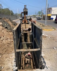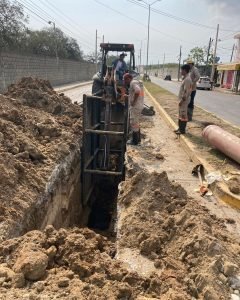 En el primer sector, se llevan cabo en tiempo y forma trabajos de reposición de tubería de 14 pulgadas, de pvc, en la calle Revolución Humanista, mientras que en la colonia Loma Alta se realiza la reparación de línea general drenaje con tubería de pvc alcantarillado, de 8 pulgadas, en calle Océano Atlántico esquina con Cuauhtémoc.