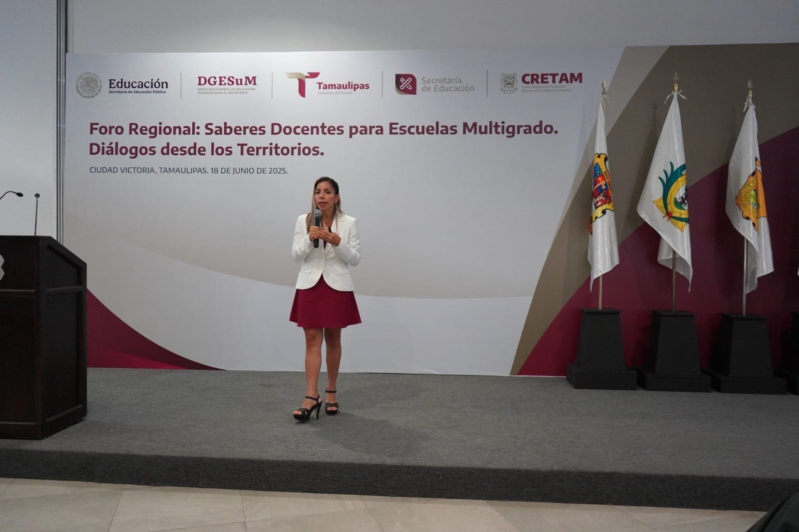 Ciudad Victoria, Tamaulipas.– El Centro Regional de Formación Docente e Investigación Educativa de Tamaulipas (CRETAM) fue sede del Foro Regional “Saberes Docentes para Escuelas Multigrado: Diálogos desde los Territorios”, informó su rectora, Amelia Castillo Morán. Explicó que este evento reunió a más de 300 personas, entre docentes, especialistas y autoridades educativas, que compartieron experiencias pedagógicas para fortalecer el trabajo colaborativo en contextos escolares multigrado. Dijo que el foro tuvo como objetivo principal visibilizar y valorar los saberes docentes construidos en las escuelas multigrado, a través de un ejercicio de diálogo entre comunidades escolares, acorde a las estrategias establecidas por el Gobierno del Estado, que dirige Américo Villarreal Anaya, para fortalecer la capacitación y actualización de las maestras y maestros en Tamaulipas. Compartió que la jornada académica incluyó la conferencia magistral “Trabajo por proyectos integradores en escuelas multigrado: conceptualización y experiencias”, a cargo de la Dra. Amanda Cano Ruiz, investigadora de la Red de Educación Rural y miembro del Sistema Nacional de Investigadoras e Investigadores de la SECIHTI. Posteriormente, se desarrollaron seis mesas de trabajo simultáneas, en las que docentes, directivos, formadores y autoridades dialogaron y sistematizaron experiencias en torno a los ejes temáticos: Prácticas docentes y estrategias didácticas situadas en escuelas multigrado y su relación con la Nueva Escuela Mexicana; Uso de la familia de libros de texto gratuitos en contextos multigrado; Autonomía profesional docente y atención a la diversidad; Proceso de acompañamiento de escuelas multigrado desde la función docente; Procesos de acompañamiento desde la función directiva, de supervisión y asesoría técnico-pedagógica; y Planeación didáctica, diseño y evaluación formativa en escuelas multigrado. Indicó que, como parte del programa, se llevó a cabo una exposición de materiales educativos elaborados por docentes de escuelas multigrado en Tamaulipas y San Luis Potosí, que incluyó secuencias didácticas, proyectos integradores, recursos didácticos elaborados por docentes y prácticas de innovación educativa. El foro concluyó con un panel de experiencias, retos y propuestas, en el que participaron docentes e investigadores provenientes de instituciones formadoras de docentes, quienes compartieron reflexiones y propuestas encaminadas al fortalecimiento de las políticas educativas multigrado. Este encuentro forma parte de una serie de tres foros regionales que se llevarán a cabo a nivel nacional, siendo Tamaulipas la primera entidad en abrir este espacio de análisis y construcción conjunta de saberes. En la ceremonia inaugural estuvieron presentes Marcela Ramírez Jordán, subsecretaria de Educación Básica, en representación del secretario de Educación, Miguel Ángel Valdez García; José Emilio Mejía Mateos, director general de Gestión Escolar y Enfoque Territorial, representante de Angélica Noemí Juárez Pérez, subsecretaria de Educación Básica a nivel federal; así como la diputada Yuriria Iturbe Vázquez, presidenta de la Comisión de Educación del Congreso del Estado, entre otras autoridades.