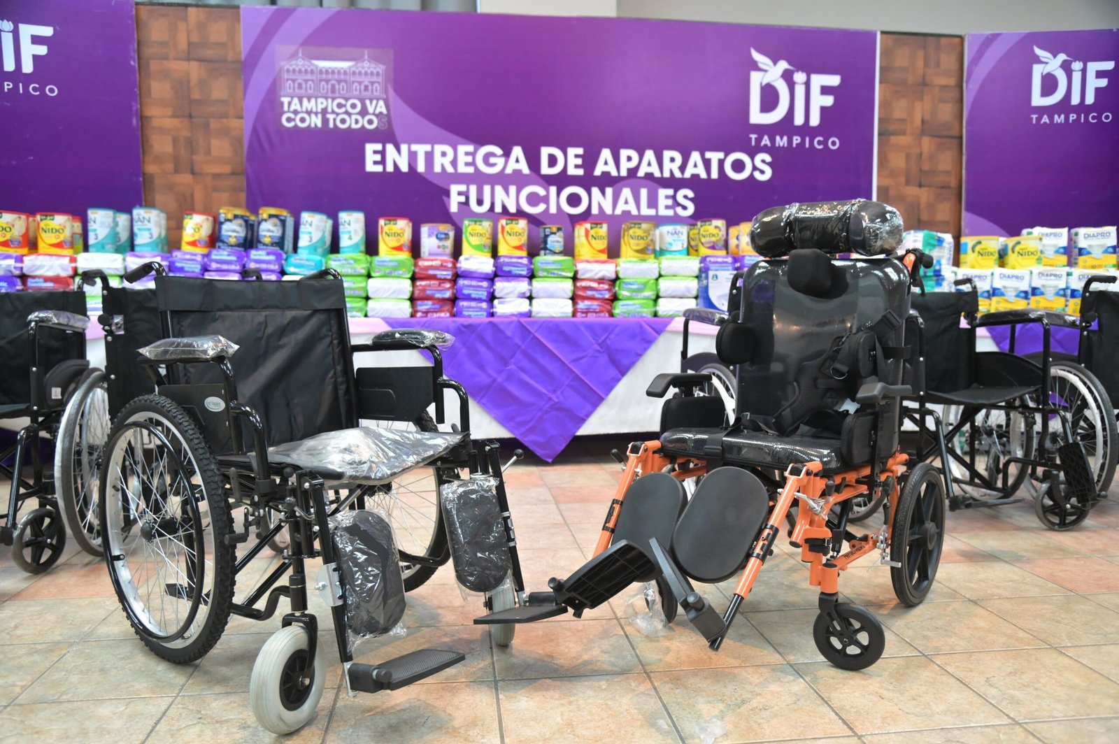 En esta segunda entrega, se distribuyeron 222 apoyos entre, sillas de ruedas, sillas de ducha, andadores, muletas, nebulizadores, pañales infantiles, pañales para adulto, dotación de leche, así como termómetros, glucómetros y baumanómetros.“Estos aparatos funcionales y apoyos alimentarios y de higiene, sin duda, serán de mucha utilidad en sus actividades cotidianas.
