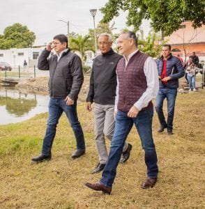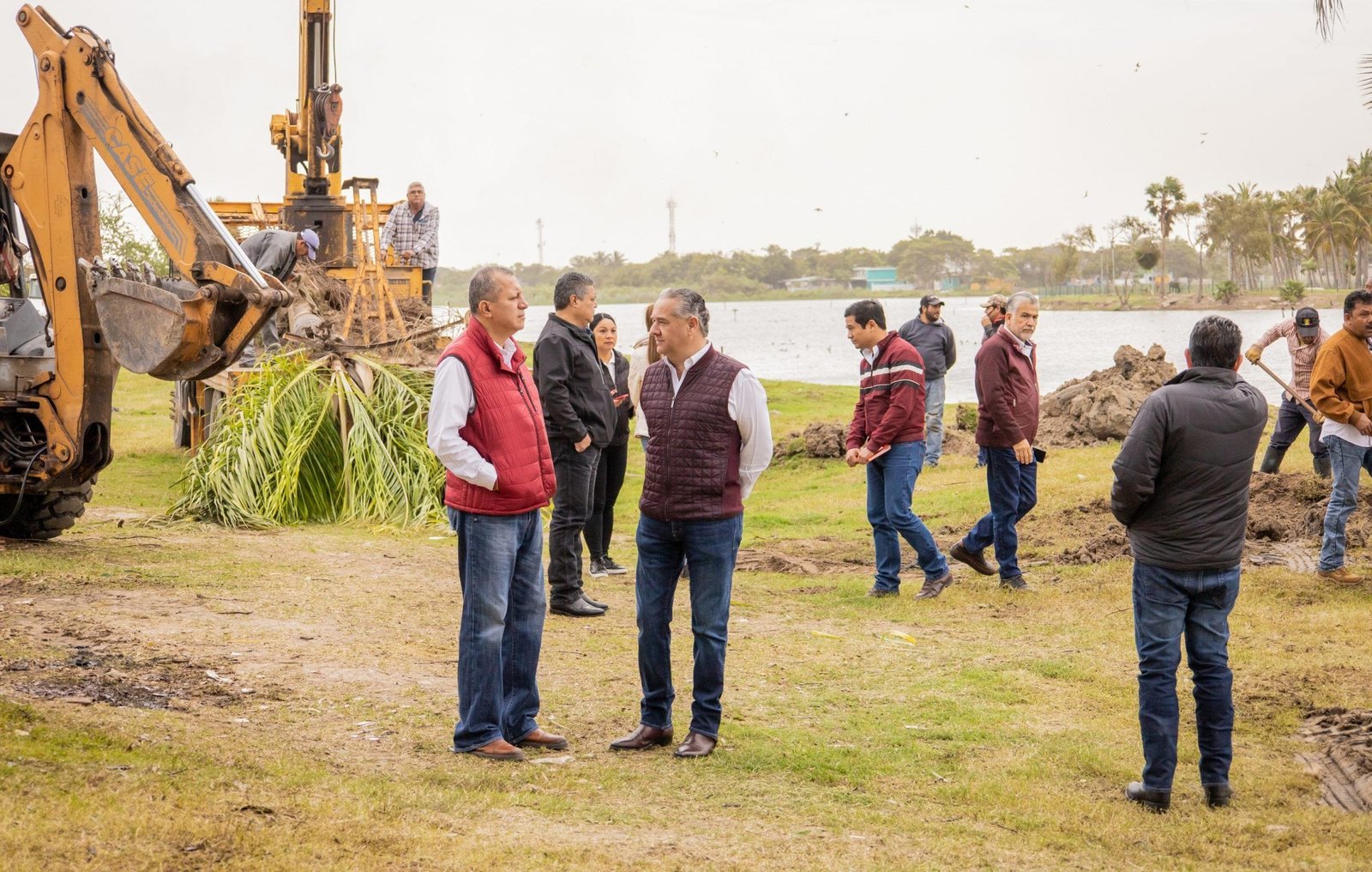 En ese tenor, el Presidente Municipal acompañado por el director de Servicios Públicos, Zamir Shahin Zamudio y el director general de Obras Públicas, Luis Carlos Leal Contreras, realizó una supervisión de las labores efectuadas en este cuerpo lagunario, donde fueron sembradas palmeras del Vivero Municipal.