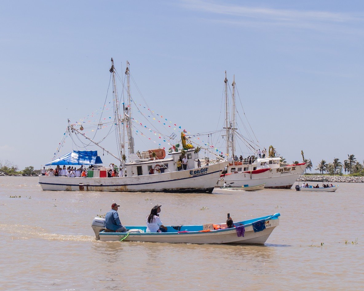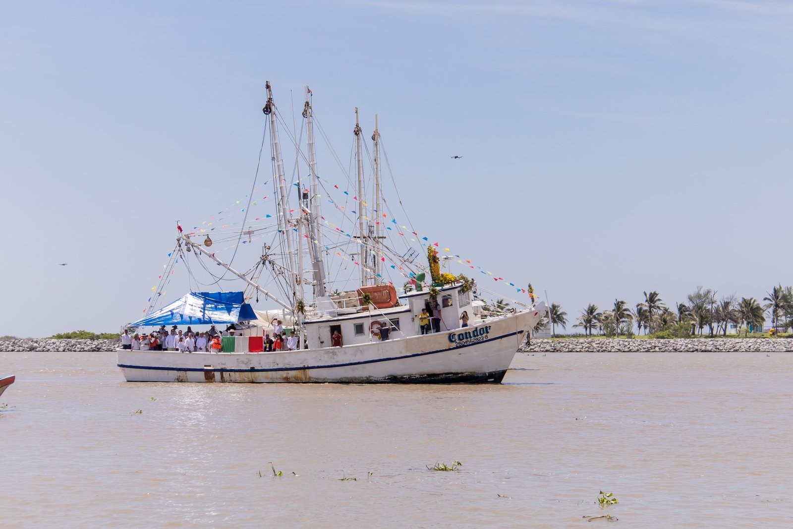Posteriormente grupos danzantes, familiares de marinos y pescadores, llegaron con la imagen de la Virgen del Carmen y en alto la llevaron al pie del gran monumento donde se celebró la Misa Solemne.Cabe mencionar, que la antigüedad de esta tradición data del año de 1967 y con ella, miles de pescadores piden a