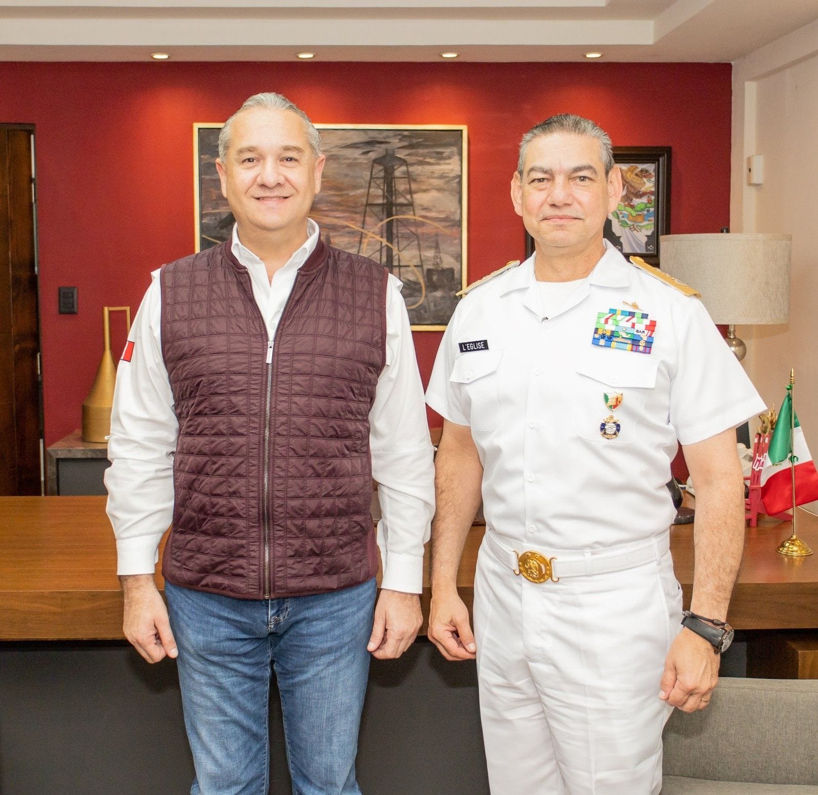 Por ello, el Presidente Municipal sostuvo una importante reunión de trabajo con el Vicealmirante Carlos Eduardo L´Eglise Escamilla, nuevo comandante de la Primera Región Naval, en la que abordaron diversos temas, particularmente los relacionados en materia de seguridad.Durante este encuentro realizado en las instalaciones de la alcaldía maderense, el jefe de la comuna, aseguró que se afianzaron los lazos entre el Gobierno Municipal y la Primera Región Naval, para continuar trabajando en el bienestar de las miles de familias que radican en la urbe petrolera.
