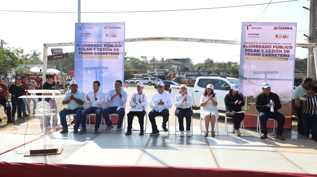 En un hecho histórico para el desarrollo urbano y la seguridad vial del municipio, el alcalde de Altamira, Dr. Armando Martínez Manríquez, encabezó el arranque de la construcción de 4.5 kilómetros de alumbrado público solar autónomo, así como la cesión del tramo carretero federal comprendido del kilómetro 25 al 30 de la carretera Tampico–Mante, en el segmento que va del Instituto Tecnológico de Altamira (ITA) al Puente de la Esperanza. Durante el evento, se informó que la cesión de este tramo carretero obedece a que la zona se encuentra totalmente urbanizada, por lo que requiere una atención más focalizada por parte del municipio, permitiendo una mejor planeación y ejecución de obras que fortalezcan la movilidad y la seguridad de quienes transitan diariamente por esta importante vía de comunicación. Asimismo, autoridades estatales dieron a conocer que el Gobierno del Estado realiza una inversión superior a los 9 millones de pesos para la instalación de alumbrado público solar autónomo en el camellón central de la carretera Tampico–Mante, en el tramo que va del kilómetro 26+400 hasta el Puente de la Esperanza.