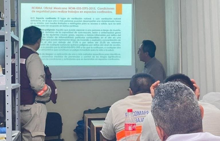 Personal de la comisión mixta de la Comisión Municipal de Agua Potable y Alcantarillado de Altamira recibió capacitación a través de importante curso sobre seguridad en espacios confinados y equipos de respiración autónoma.