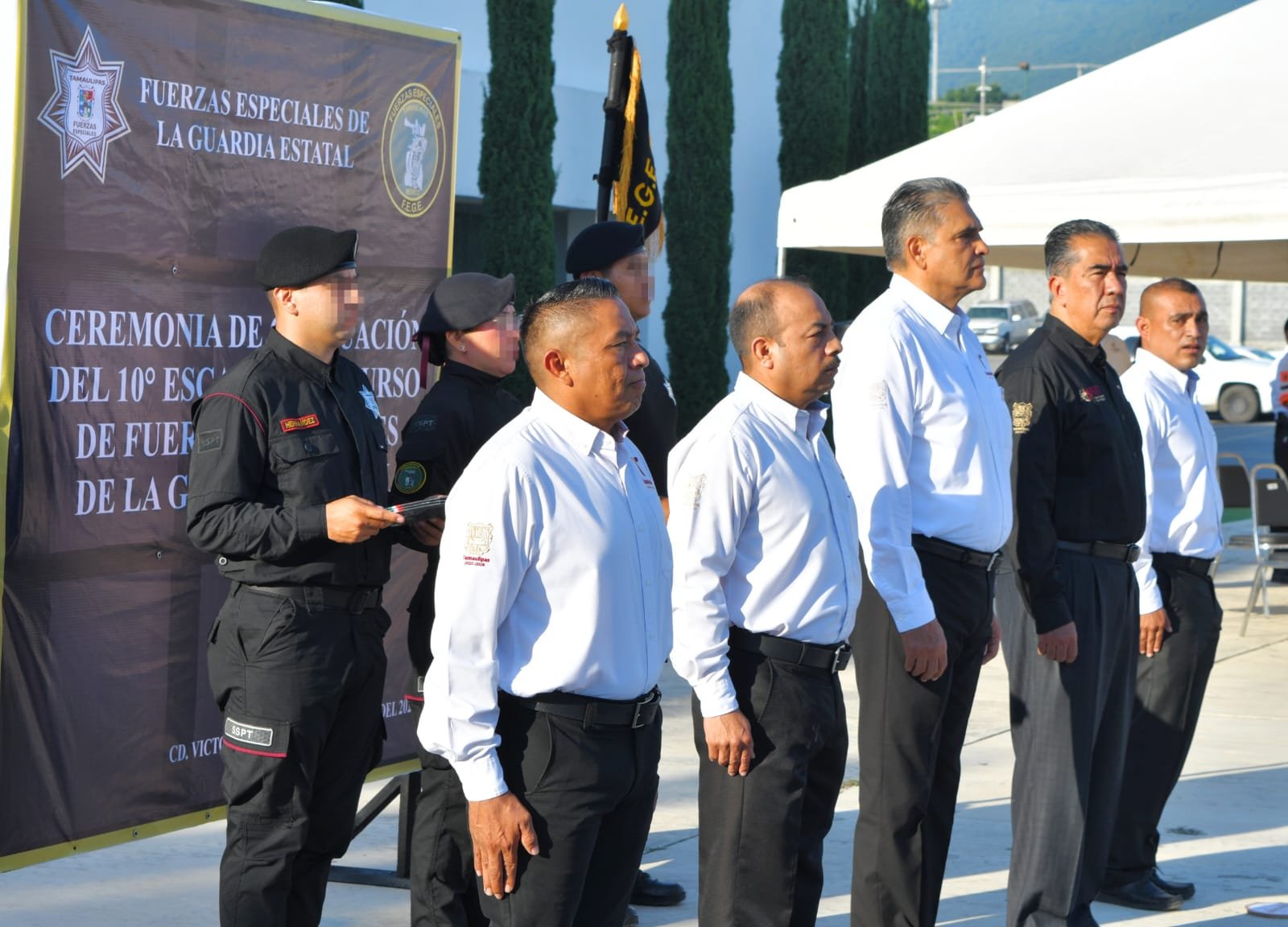 Ciudad Victoria, Tamaulipas.- La Secretaría de Seguridad Pública de Tamaulipas (SSPT) formalizó la incorporación de siete nuevos elementos que concluyeron con éxito el décimo escalón del Curso de Fuerzas Especiales de la Guardia Estatal (FEGE). Durante la ceremonia, el titular de la SSPT, Mtro. Carlos Arturo Pancardo Escudero destacó el compromiso, la disciplina y la vocación de servicio de los nuevos integrantes, quienes forman parte de la vanguardia de seguridad de la institución.