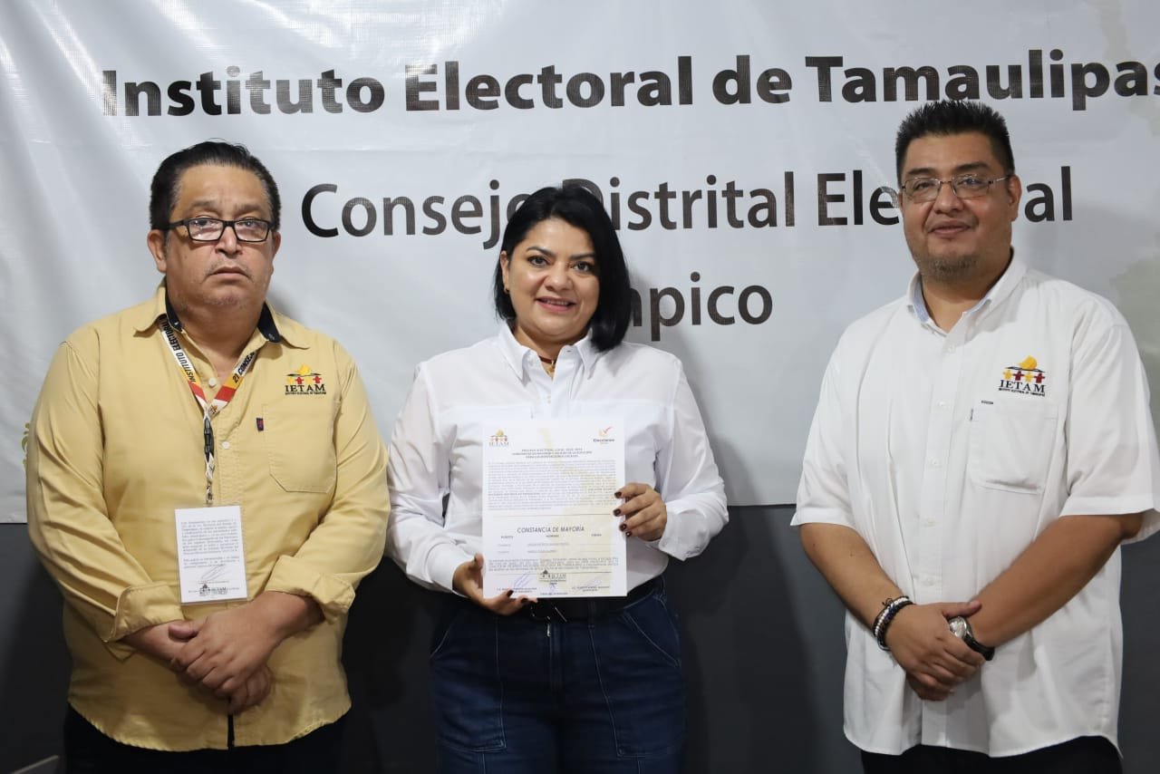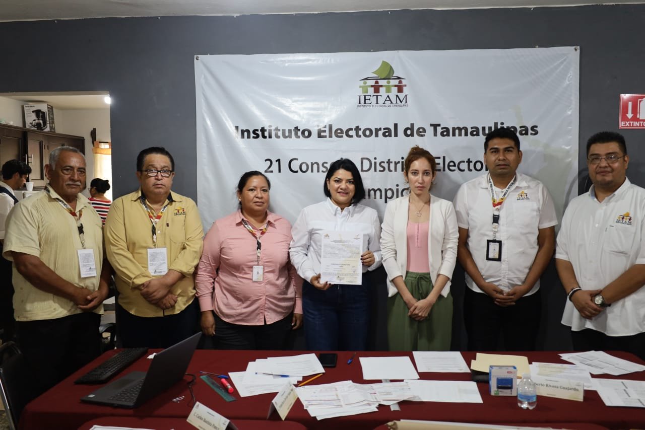 Tampico, Tam.- La mañana de este jueves 6 de junio, la candidata de la coalición Sigamos Haciendo Historia, en el distrito 21 en la zona norte de Tampico Úrsula Patricia Salazar Mojica, recibió de manos del presidente del Comité Distrital del Instituto Electoral de Tamaulipas la Constancia de Mayoría que la acredita como Diputada Electa.