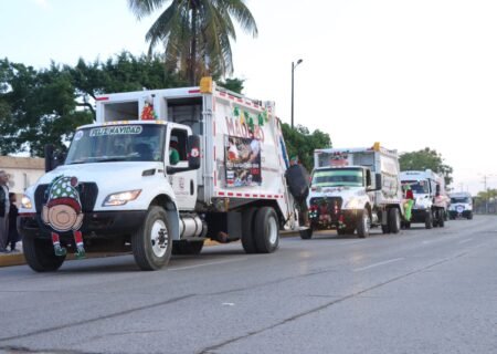 Los trabajadores encargados de la recolección de desechos sólidos de Servicios Públicos de Ciudad Madero, ataviados con sus uniformes y herramientas, se transforman en auténticos héroes navideños al recorrer las calles del municipio, inmersos en la magia de la temporada: desde temprano, se reunieron en el Parque Bicentenario, donde contaron con la presencia del presidente municipal Erasmo González Robledo, y luego partieron para llevar a cabo su labor diaria casa por casa en cada colonia de la ciudad.