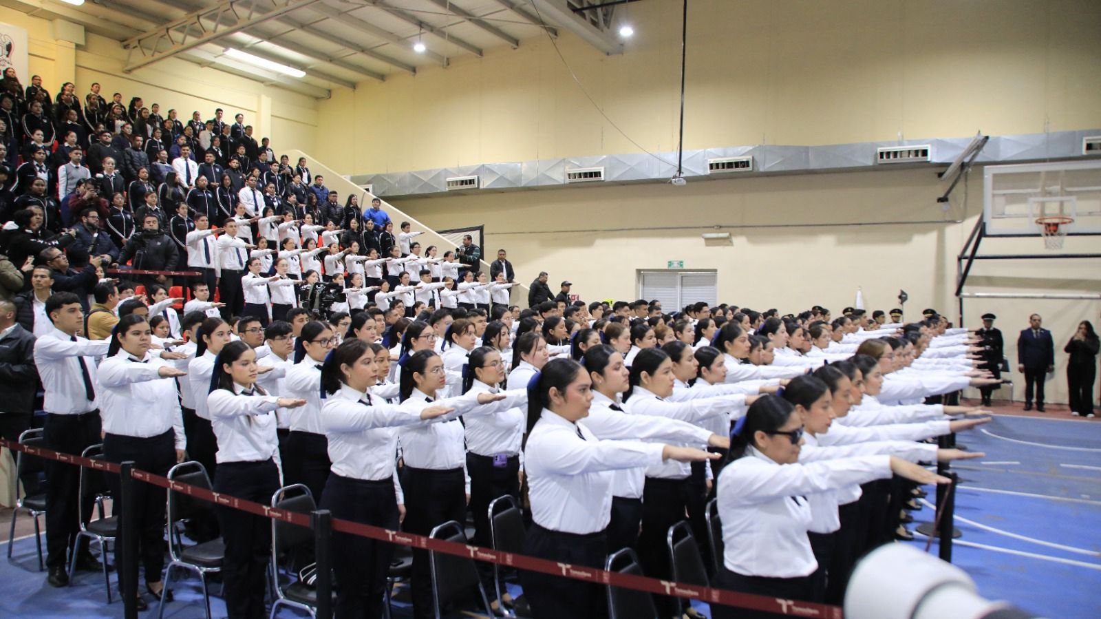 Ante estudiantes y docentes, autoridades del Poder Judicial, legisladores, integrantes de su gabinete, de las Fuerzas Armadas, y el secretario general de la Sección 30 del SNTE, Arnulfo Rodríguez Treviño, el mandatario subrayó que quienes hoy se forman como educadores tienen la oportunidad y la responsabilidad no solo de ser educadores en el aula, sino también en el ámbito social contribuyendo a la construcción social a través de las ideas y el pensamiento crítico, aunado a que el magisterio tiene un compromiso histórico en un contexto marcado por el avance de nuevas tecnologías, herramientas informáticas y nuevas formas de análisis de la información.