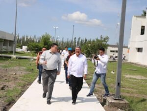 Tras participar en la “Conferencia Magistral sobre Salud Mental” en la Universidad Politécnica de Altamira (UPALT), el presidente municipal, Dr. Armando Martínez Manríquez, realizó un recorrido por las instalaciones del plantel para supervisar el avance en la construcción de una techumbre.