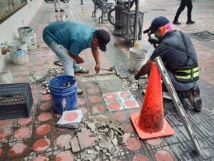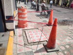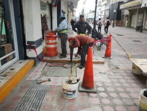 El funcionario dio a conocer que personal a su cargo, lleva a cabo la rehabilitación y reposición de losetas, adoquines y tapas de registro en una amplia franja peatonal del primer cuadro, donde se registra la mayor afluencia de viandantes.