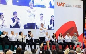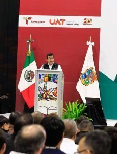 Por su parte el rector Dámaso Anaya, felicitó al gobernador a nombre de toda la comunidad universitaria por su Segundo Informe de Gobierno y agradeció la incorporación de la UAT en la Comisión para la Conmemoración del Bicentenario de Tamaulipas.Agregó que la Universidad Autónoma de Tamaulipas inicia una nueva etapa que abraza una visión educativa humanista que pone a la comunidad y sus valores éticos, sociales y culturales en el centro de la reflexión y la acción.“Este nuevo modelo académico busca la realización profesional y personal de nuestros estudiantes, pero también anhela ampliar su influencia para el mejoramiento de la sociedad y es fundamental que la educación superior trascienda las aulas y se convierte en un motor para la transformación positiva en nuestras comunidades», dijo.También acompañaron a las autoridades en el presídium: Eduardo Gattás Báez, presidente municipal de Victoria; la diputada Úrsula Salazar Mojica, presidenta de la Junta de Coordinación