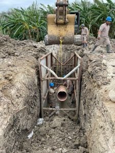 Concluidos los trabajos de reposición y reparación de un colector de drenaje en la Zona Centro, personal de la Comisión Municipal de Agua Potable y Alcantarillado de Altamira procedió a la compactación de terracería, perfilado de pavimento, y nivelación de banqueta en el área intervenida en el Bulevar al Puerto Industrial casi esquina con Avenida Monterrey. En esa área se introdujeron 110 metros lineales de colector de 14 pulgadas de diámetro con tubería de PVC alcantarillado, a una profundidad de 3.30 metros, en Bulevar al Puerto Industrial, entre Bulevar Allende y Coronel Trujillo, del referido sector. Las labores en mención, comprendidas dentro de las acciones mantenimiento y mejoramiento de la infraestructura de agua y drenaje, se llevaron a cabo en tiempo y forma, lo que permitirá un mejor funcionamiento de la red hidrosanitaria en esa zona. De igual manera, cuadrillas de trabajadores realizan la reubicación de colector de 18 pulgadas en lo que será la Planta Tratadora de Aguas Residuales de Villa Cuauhtémoc, donde llegarán y se manejarán las aguas residuales de diferentes localidades del área rural de Altamira, gracias a la labor conjunts entre los gobiernos estatal y municipal para generar mejores condiciones de vida a las familias residentes de ejidos y comunidades rurales. Cumpliendo su compromiso con los altamirenses, la COMAPA Altamira trabaja las 24 horas, los 365 días del año, realizando mejoras en los colectores y brindando el adecuado mantenimiento a las líneas de drenaje, respondiendo además de manera oportuna los reportes de fugas de aguas residuales de la ciudadanía.
