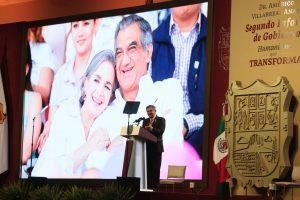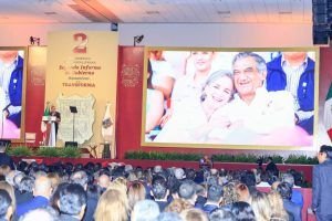 Ante la presencia de la presidenta del DIF, Tamaulipas, María de Villarreal y titulares de los Poderes Legislativo y Judicial, integrantes del gabinete federal, legisladores, mandos militares y de las fuerzas armadas, dirigentes de organismos industriales, cámaras empresariales y representantes de todos los sectores productivos, el mandatario tamaulipeco señaló que el segundo informe entregado este día al Honorable Congreso de
