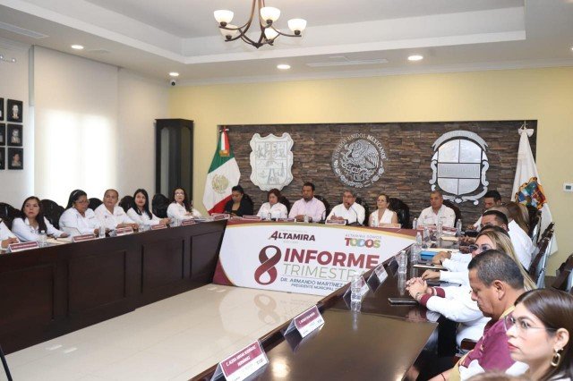 Altamira, Tamaulipas.-A través de una transmisión en vivo en sus redes sociales oficiales, el presidente municipal de Altamira, Dr. Armando Martínez Manríquez, presentó su Octavo Informe Trimestral de Resultados.Fue desde la sala de Cabildo de la presidencia municipal que Armando Martínez, acompañado de síndicos, regidores y su esposa, la C.P. Rossy Luque de Martínez, presidenta del Sistema DIF local, informó al pueblo de Altamira importantes avances en el orden municipal, sobre todo en materia hídrica.Cumpliendo con su compromiso de campaña desde el 2021, que consistía en informar de manera trimestral las acciones principales de la administración pública local, el jefe edilicio presentó este informe, el último de su actual administración.En el mismo, AMM destacó la realización de 142 conferencias mañaneras cada lunes, como parte de las políticas públicas establecidas desde el inicio de su administración. Subrayó la contundente victoria en las pasadas elecciones municipales, con un total de 70,074 votos de confianza para volver a presidir el Ayuntamiento, lo que representó un 72.08% del total de sufragios emitidos, ganando en las 85 secciones electorales del municipio.Entre las acciones más relevantes de su gestión, el Dr. Martínez Manríquez mencionó la recuperación de la Laguna del Champayán, que se encontraba en estado de abandono al inicio de su administración. En agosto de 2022, se llevó a cabo la botadura de la Draga Municipal Altamira, marcando el inicio de un arduo trabajo de desazolve en las bocatomas Hidalgo y Duport/Dima.Mencionó que; “a finales del 2022, iniciamos la construcción de cinco cárcamos y líneas de presión en la zona rural, con inversiones significativas en diversas comunidades. Además, se realizaron importantes inversiones en tuberías de descarga y saneamiento en la zona urbana, una demanda sentida de la población”.Recordó también el presidente municipal su participación en diversos foros y conferencias internacionales, como el 7mo Foro Global de Ciudades Sustentables y Sostenibles en París, Francia, y la Cumbre Internacional del Agua 2023 en Bogotá, Colombia, donde compartió las experiencias y proyectos de Altamira en agua limpia y saneamiento.En enero de 2024, lograron desazolvar el canal «El Puente» en el ejido Martín A. Martínez, liberando 8 km para la navegación. En febrero de 2024, participó en la 26ª Conferencia Interamericana de Alcaldes y Autoridades en Miami, exponiendo las inversiones en infraestructura sostenible de Altamira.Amplió de igual manera que en marzo del presente año, se firmó un convenio de colaboración con la COMAPA SUR para iniciar los trabajos de desazolve del Sistema Lagunario Chairel, asegurando el abasto de agua para 80 mil usuarios de la zona conurbada. En abril y mayo de 2024, se llevaron a cabo trabajos de adecuación en los equipos de bombeo y la introducción de una línea de captación alterna con una inversión aproximada de 5 millones de pesos.En este informe virtual, el jefe de la Comuna altamirense destacó la solidaridad de diversas empresas durante la crisis hídrica, como Industrias ALPEK, Chemours y Dynasol, que colaboraron en el llenado de pipas para la distribución de agua. También mencionó la intervención de AISTAC con la donación de una bomba de 300 HP y la colaboración del Gobierno del Estado y el respaldo del Gobernador, Dr. Américo Villarreal Anaya con pipas adicionales para distribuir agua a la población.