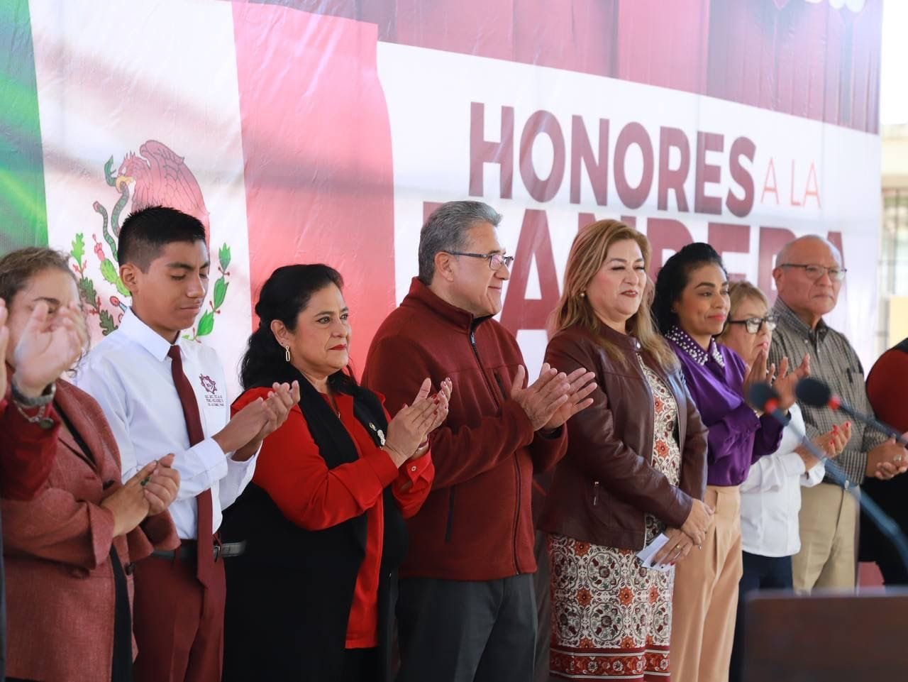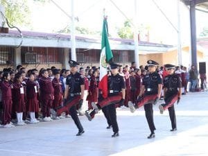 Este evento contó también con una solemne ceremonia de honores a la enseña nacional, a la par que alumnos representantes pronunciaron efemérides conmemorativas al presente mes de febrero.Correspondió a la directora del plantel, Mtra. María del Carmen Cervantes Rosales el darle las gracias al jefe de la
