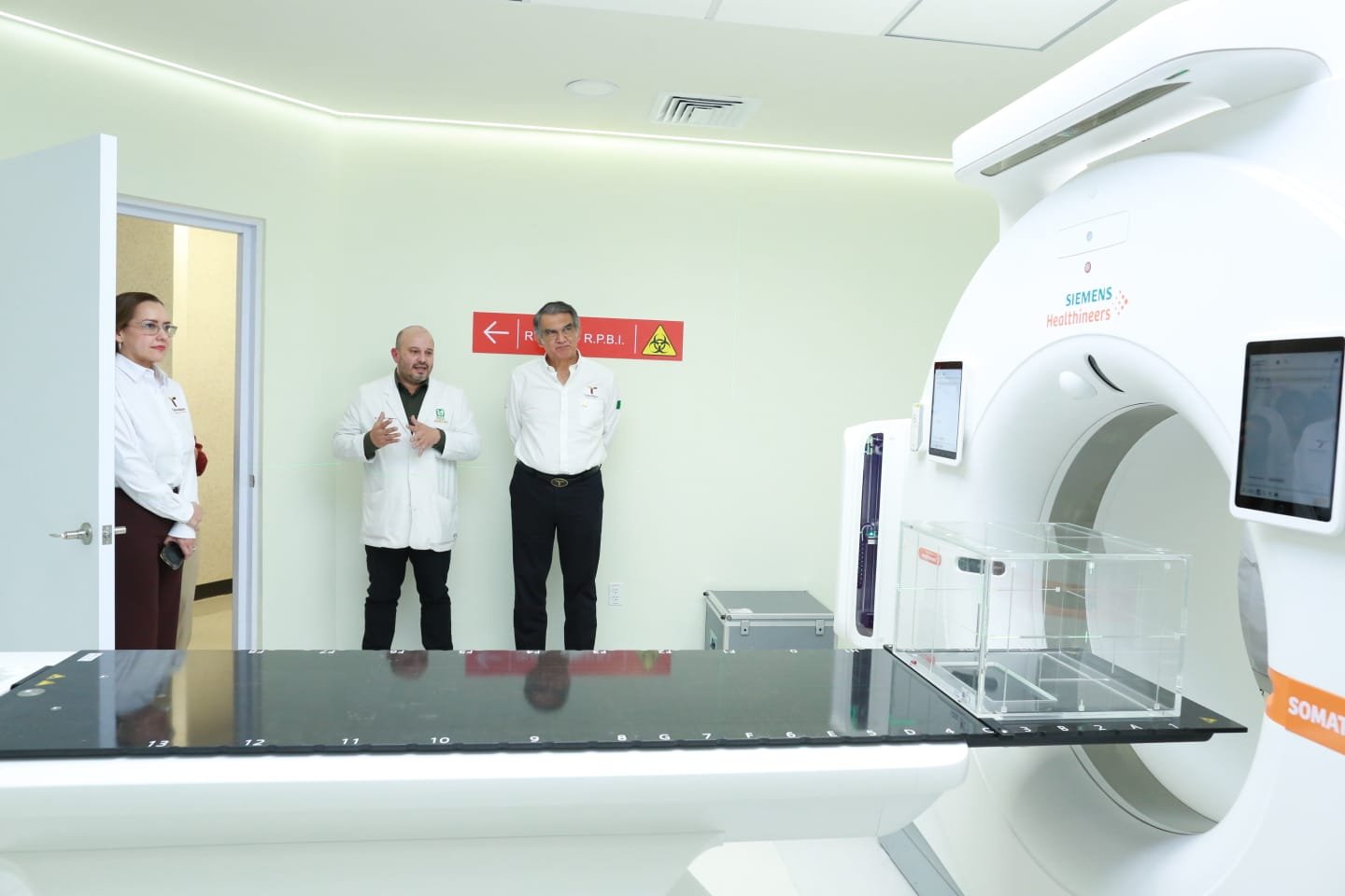 Ciudad Victoria, Tamaulipas.-El gobernador de Tamaulipas, Américo Villarreal Anaya, efectuó una visita de supervisión al Centro Oncológico de Tamaulipas en Ciudad Victoria, donde revisó los avances de la obra de remodelación y el equipamiento del área de radioterapia, que ya cuenta con el acelerador lineal. Acompañado de la secretaria de Salud, Adriana Marcela Hernández Campos, el mandatario arribó la tarde de este martes a este centro hospitalario, donde fue recibido por el director, Francisco Alberto Velasco Canseco. Durante su recorrido, saludó a pacientes y dialogó con el personal, para posteriormente supervisar el área donde se encuentra el acelerador lineal. El director del Centro Oncológico brindó una amplia explicación sobre las obras de remodelación y equipamiento, que a la fecha registran un avance del 85% y que una vez concluidas beneficiarán a un millón 624 mil habitantes sin seguridad social en Tamaulipas. La inversión en este acelerador lineal es de aproximadamente 135.13 millones de pesos, a lo que se suman 28 millones de pesos de inversión estatal para obra complementaria. De acuerdo con la información proporcionada al gobernador, se prevé que este moderno equipo, entre en operación a mediados del año, una vez que se cumplan los requisitos correspondientes y se cuente con la licencia de operación. Este es un equipo de alta tecnología para radioterapia, el cual es de mayor beneficio para las y los pacientes, al generar menos efectos secundarios y reducir los tiempos de tratamiento. De manera paralela, se realizan trabajos en la obra complementaria de esta área anexa a radioterapia, que incluyen la construcción de consultorios e instalaciones sanitarias.