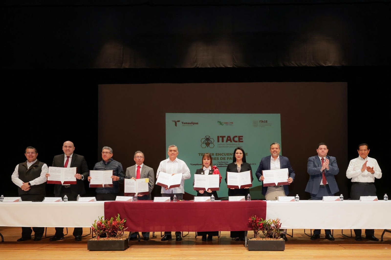 A fin de generar espacios para la formación integral de los alumnos del Instituto Tamaulipeco de Capacitación para el Empleo (ITACE), este día, la Presidenta municipal Mónica Villarreal Anaya encabezó la firma del convenio de colaboración entre los municipios de la zona conurbada y la institución educativa.En el evento desarrollado en el Espacio Cultural Metropolitano, en el marco del Tercer Encuentro de Padres de Familia, la alcaldesa porteña, acompañada del Presidente municipal de Altamira, Armando Martínez Manríquez; y del Secretario del Ayuntamiento de Ciudad Madero, Héctor Marín Rodríguez, explicó que mediante esta sinergia, los alumnos del ITACE podrán desarrollar su servicio social y prácticas profesionales en las diferentes áreas de la administración municipal, y con ello, fortalecer los programas y actividades que realizan los ayuntamientos de la zona conurbada. “Hoy firmamos este convenio de colaboración en materia de servicio social y prácticas profesionales, modelo de educación dual y capacitación para el trabajo. De manera coordinada estamos trabajando para que los jóvenes del ITACE tengan la oportunidad de desarrollarse en las diferentes áreas del municipio, nosotros les damos todas las facilidades”, expresó.En el evento se contó con la presencia de la Directora general del ITACE, Claudia Anaya Alvarado; así como del Subsecretario de Educación media superior y superior en el Estado, Guadalupe Acosta Villarreal; y el Director general de la DGETI Rolando de Jesús López Saldaña.Mónica Villarreal reiteró su compromiso con la educación y el desarrollo, por lo que, aseguró, que a través de esta alianza, el municipio podrá apoyar a los jóvenes para que puedan desarrollar lo aprendido en las aulas, pero también estará en condiciones de ampliar y fortalecer sus programas de beneficio social.“Uno de los muchos campos de acción donde podrán desarrollarse los jóvenes del ITACE, puede estar en la elaboración de los juegos recreativos que estamos instalando en los distintos parques de la ciudad, lo que se traduce en un esquema de beneficio mutuo». A la firma del Convenio y Tercer encuentro de padres de familia, asistieron también, el Rector de la Universidad Politécnica de Altamira, Jesús Ricardo Ramos Sánchez; el Rector de la Universidad Tecnológica Tamaulipas Norte, Edgar Garza Hernández; el Delegado del DGETI en Tamaulipas, Olegario Muñiz Cura y el Director del ITACE Altamira, Rodolfo Benito Alamilla Santamaría.