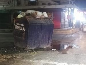 Tampico Tamps. Los contenedores rebosando de basura, se han convertido en un grave foco de infección especialmente en el centro de Tampico.
